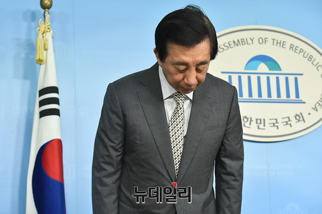 김성태 자유한국당 의원이 30일 오전 국회 정론관에서 딸의 KT 부정채용 의혹 관련 해명 기자회견을 갖고 고개를 숙여 인사하고 있다.