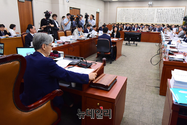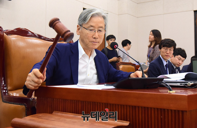 여상규 법사위원장이 31일 오후 국회에서 열린 법제사법위원회 전체회의에서 의사봉을 두드리고 있다.