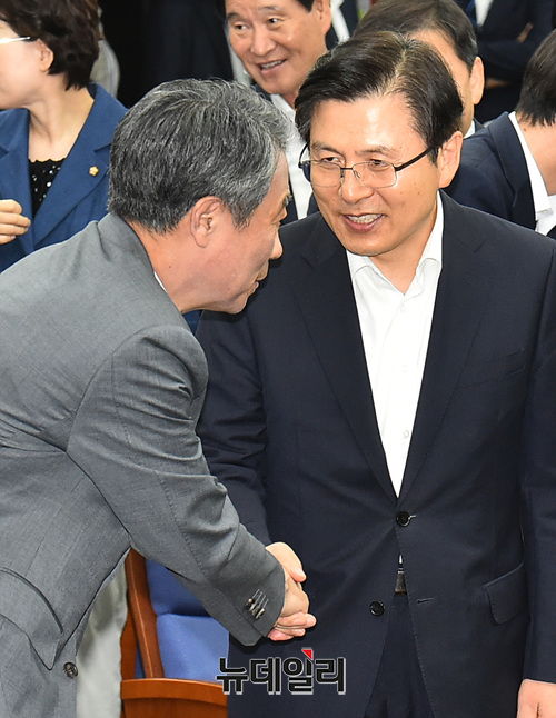 [포토] 악수 나누는 황교안 자유한국당 대표