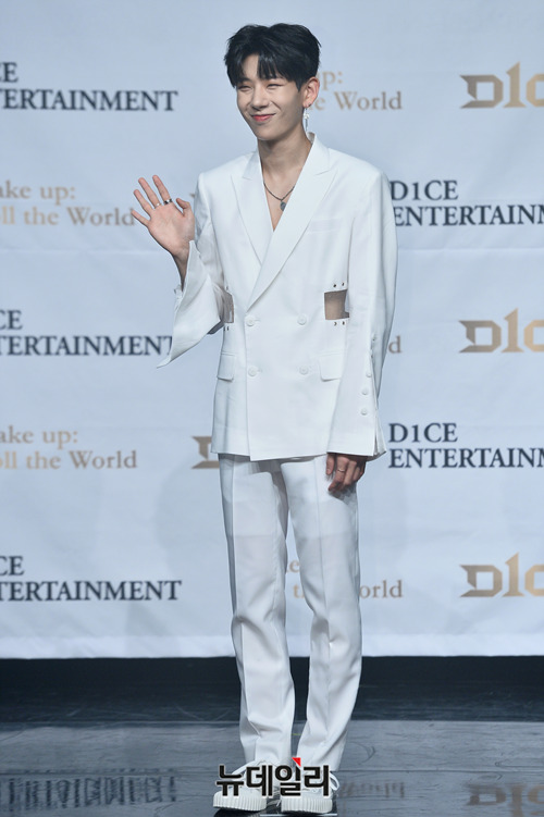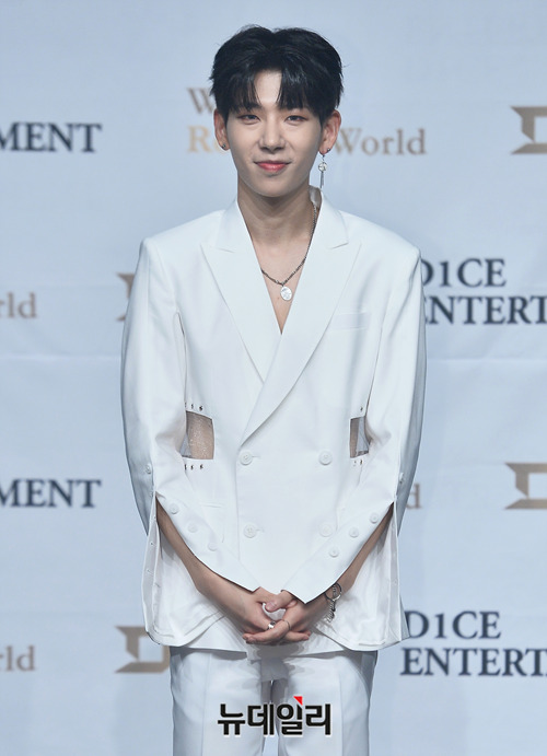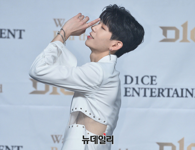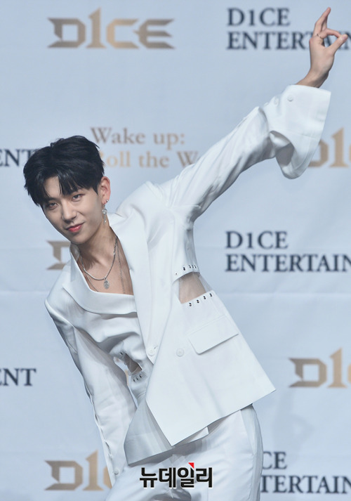아이돌그룹 D1CE(디원스) 정유준이 1일 오후 서울 강남구 SAC아트홀에서 열린 첫 번째 미니앨범 'Wake up : Roll the World(웨이크 업 :롤 더 월드)' 쇼케이스에서 포토타임을 갖고 있다.이번 앨범의 타이틀 곡 '깨워(Wake up)'는 트랩 비트와 강렬한 브라스가 조화를 이룬 곡으로, 사운드 위에 잠들어 있던 나를 깨우고 팬들을 위해 모든 것을 걸겠다는 이야기를 담았다. 총 6곡으로 구성된 이번 미니앨범은 오후 6시 첫 공개된다.