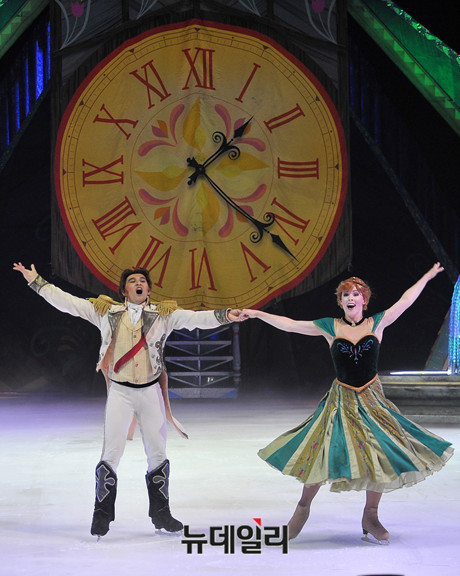 디즈니 온 아이스 '겨울왕국'은 국내에서 천만관객을 돌파한 애니메이션 '겨울왕국'을 초대형 아이스 뮤지컬로 각색한 공연이다. 원작의 스케일과 감동을 살려 고난도 스케이팅과 화려한 무대와 의상 그리고 기발한 특수효과 등이 펼쳐진다. 오는 11일까지 목동 아이스링크에서 공연된다.