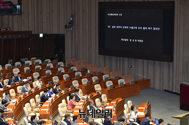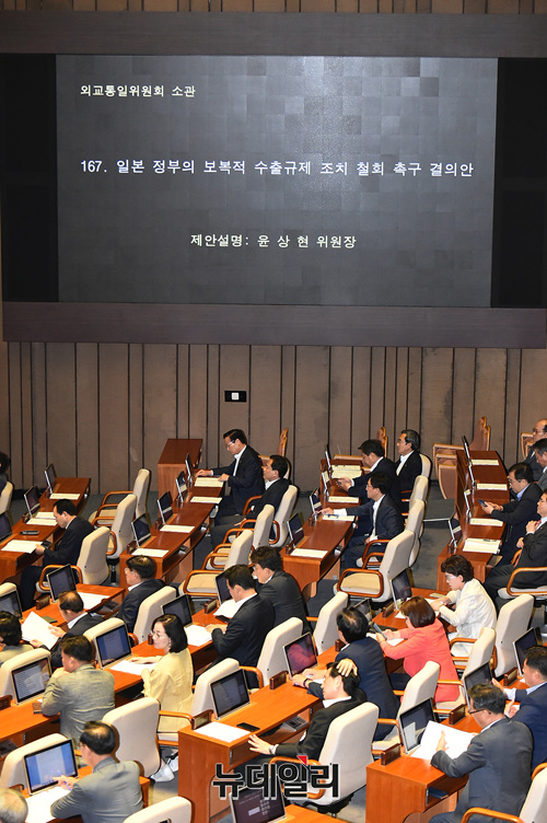[포토] '일본 정부의 보복적 수출규제 조치 철회 촉구 결의안' 국회 통과