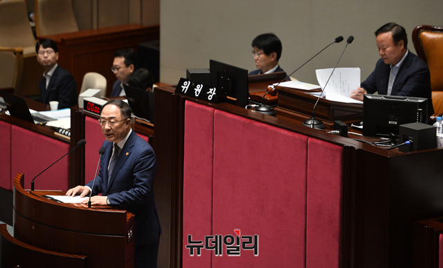 [포토] 국회 예결위 전체회의, 발언하는 홍남기 부총리