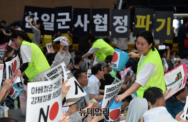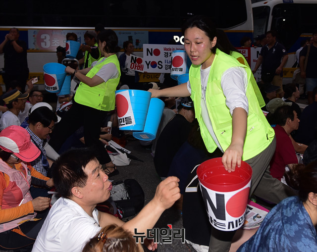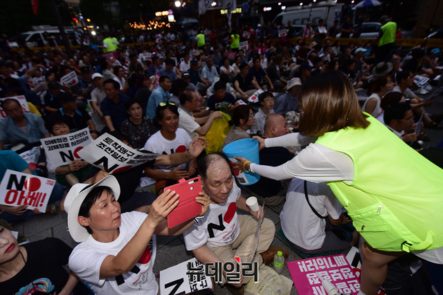 이날 집회는 일본 정부가 지난 2일 한국을 화이트리스트 명단에서 제외한것을 규탄하기 위해 열렸다. 이들은 광복절인 오는 15일에도 대규모 반일 촛불집회를 예고했다.