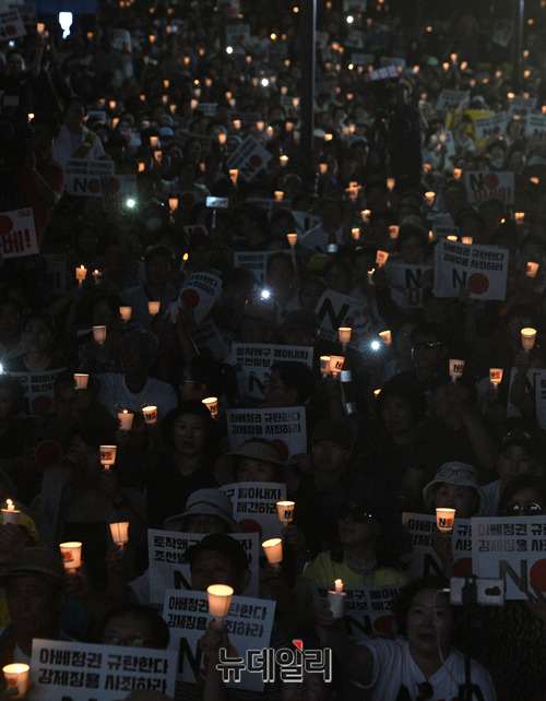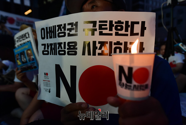 이날 집회는 일본 정부가 지난 2일 한국을 화이트리스트 명단에서 제외한것을 규탄하기 위해 열렸다. 이들은 광복절인 오는 15일에도 대규모 반일 촛불집회를 예고했다.