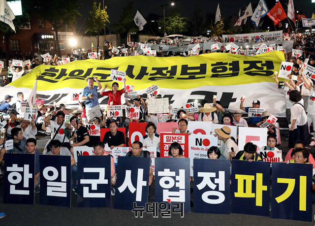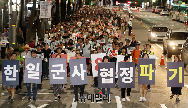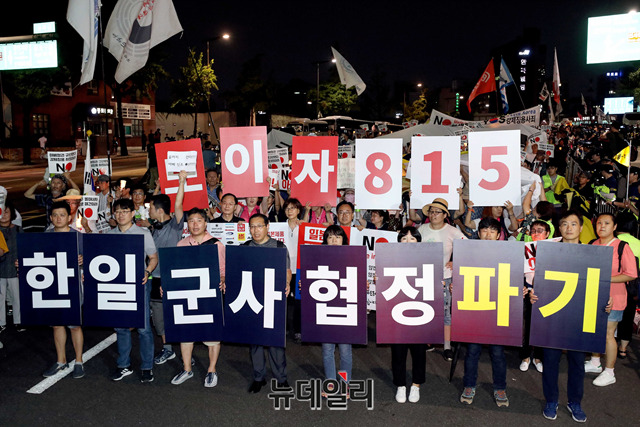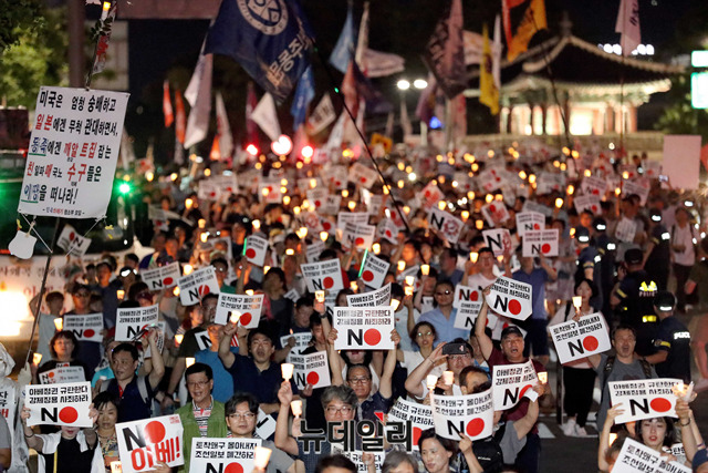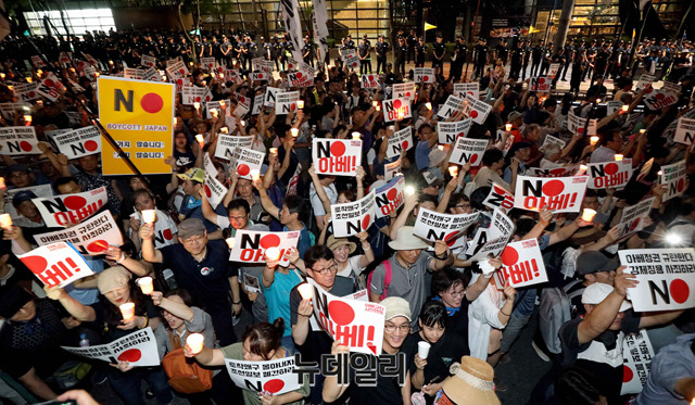 이날 집회는 일본 정부가 지난 2일 한국을 화이트리스트 명단에서 제외한것을 규탄하기 위해 열렸다. 이들은 광복절인 오는 15일에도 대규모 반일 촛불집회를 예고했다.