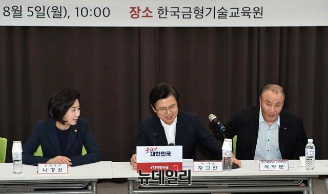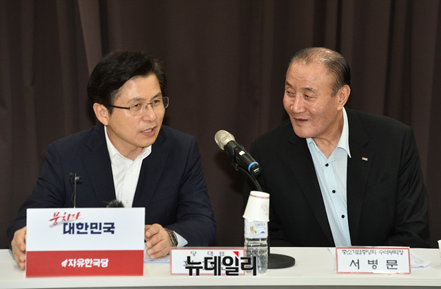 황교안 자유한국당 대표와 서병문 중소기업중앙회 수석부회장이 5일 오전 경기 시흥시 한국금형기술교육원에서 열린 현장 최고위원회의에서 대화를 하고 있다.이날 열린 현장 최고위는 한국당이 일본 수출규제로 피해를 입고 있는 제조업체 관계자들의 고충과 건의사항을 듣기 위해 열렸다. 지난 5월 23일 산불피해지역인 강원 고성에서 열린 현장 최고위 이후 처음이다.현장최고위에는 황 대표, 나경원 원내대표, 한국당 지도부, 서 중소기업중앙회 수석부회장, 권혁홍 수석부회장 등이 참석했다. (경기 시흥=박성원 기자)