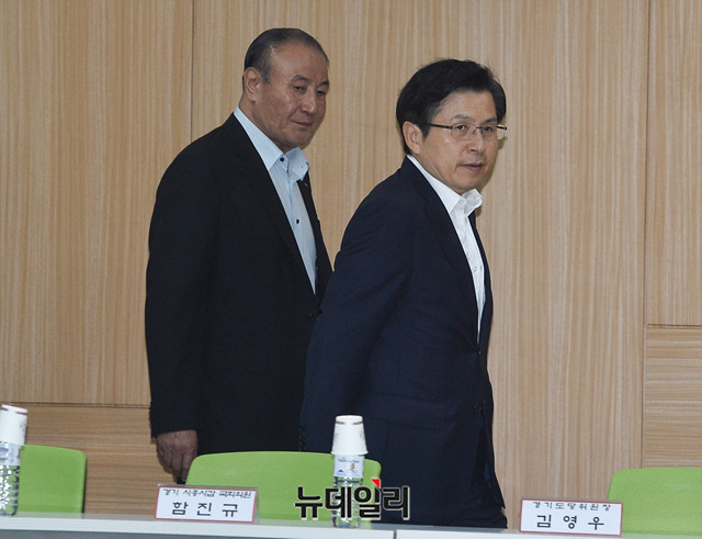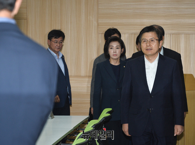 황교안 자유한국당 대표와 나경원 원내대표 및 지도부, 서병문 중소기업중앙회 수석부회장 등이 5일 오전 경기 시흥시 한국금형기술교육원에서 열린 현장 최고위원회의에 입장하고 있다.이날 열린 현장 최고위는 한국당이 일본 수출규제로 피해를 입고 있는 제조업체 관계자들의 고충과 건의사항을 듣기 위해 열렸다. 지난 5월 23일 산불피해지역인 강원 고성에서 열린 현장 최고위 이후 처음이다.현장최고위에는 황 대표, 나 원내대표, 한국당 지도부, 서 중소기업중앙회 수석부회장, 권혁홍 수석부회장 등이 참석했다. (경기 시흥=박성원 기자)