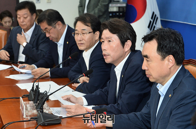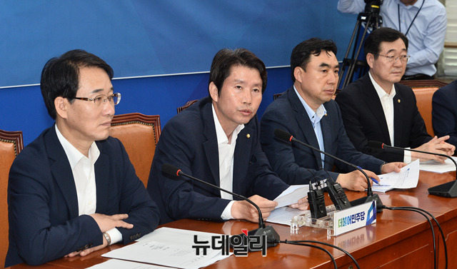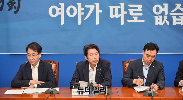 이인영 더불어민주당 원내대표가 6일 오전 국회에서 열린 원내대책회의·상임위간사단 연석회의에서 모두발언을 하고 있다.