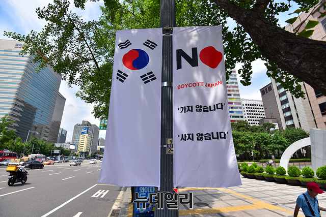 [포토] 세종대로에 설치된 '노 재팬' 반일 배너기