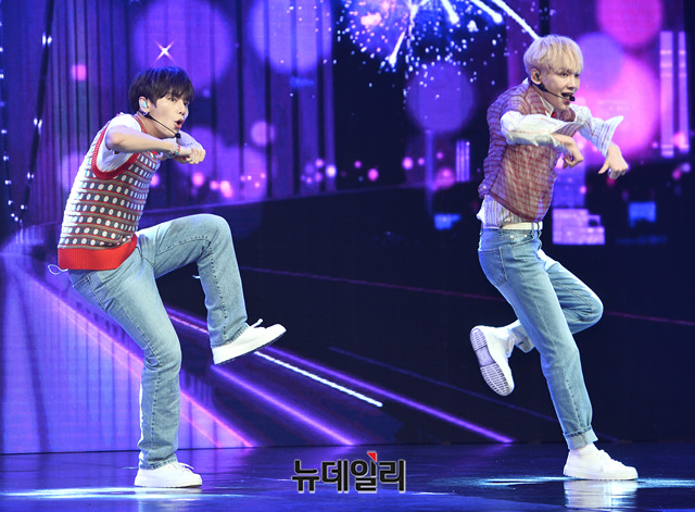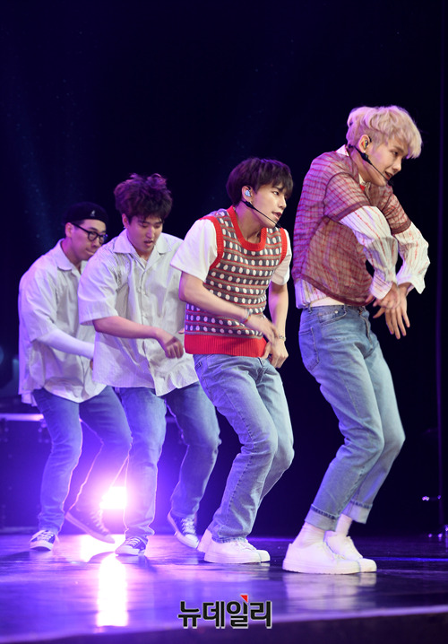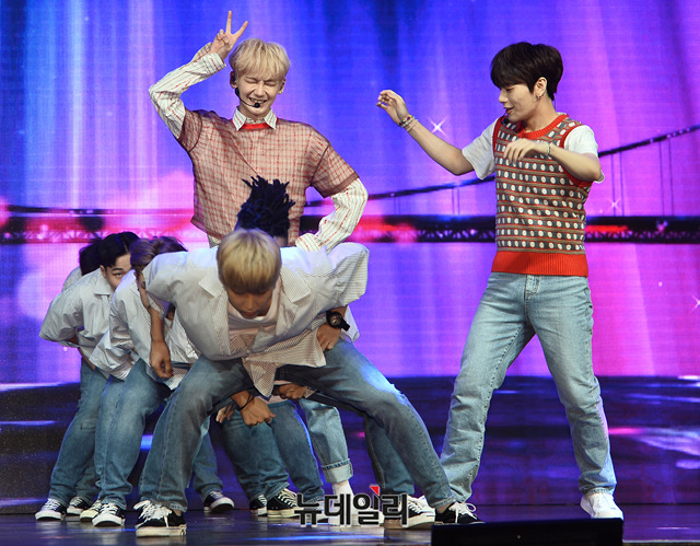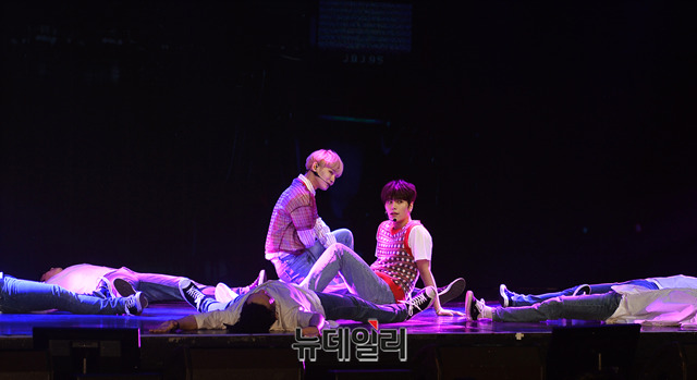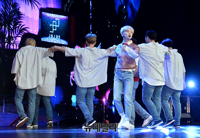 아이돌그룹 JBJ95(제이비제이 95)가 6일 오후 서울 광진구 예스24 라이브홀에서 열린 세번째 미니앨범 'SPARK(스파크)' 쇼케이스에서 무대를 선보이고 있다.