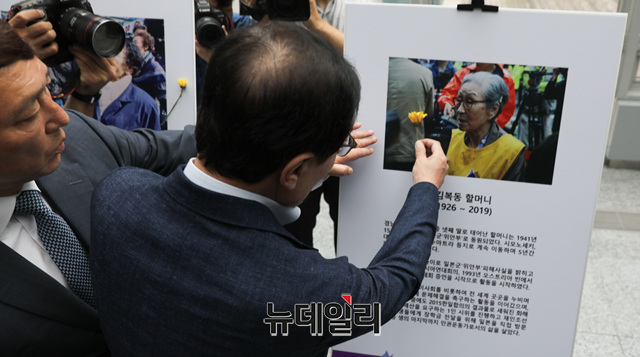 [포토] '강제징용·위안부 문제 관련 사진전시회' 참석한 이해찬