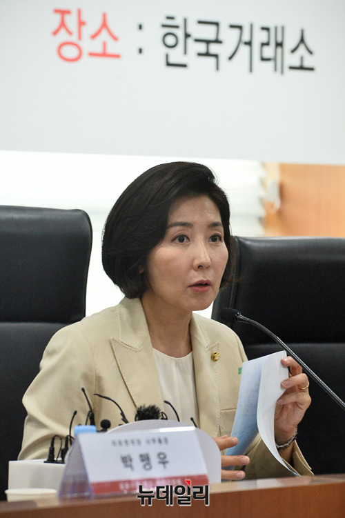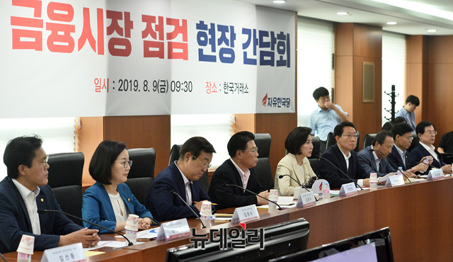 나경원 자유한국당 원내대표가 9일 오전 서울 여의도 한국거래소에서 열린 금융시장 점검 현장간담회에서 모두발언을 하고 있다.