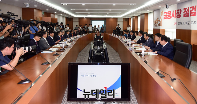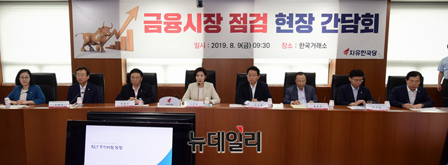 이날 현장간담회는 환율 및 주가급변 등 금융시장 혼란 발생 상황에 국내 기업의 경제적 타격에 대한 해결책을 모색하기 위해 열렸다. 간담회에는 나 원내대표, 정지원 한국거래소 이사장, 김상훈 의원 등이 참석했다.