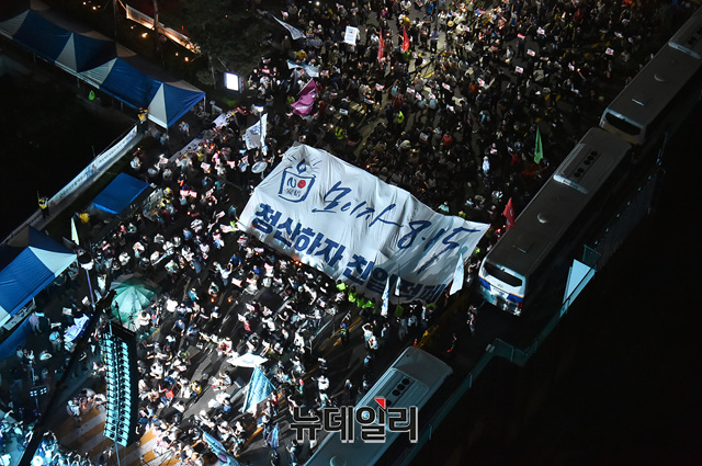 [포토] '모이자 8.15, 청산하자 친일적폐' 현수막 펼치는 참가자들