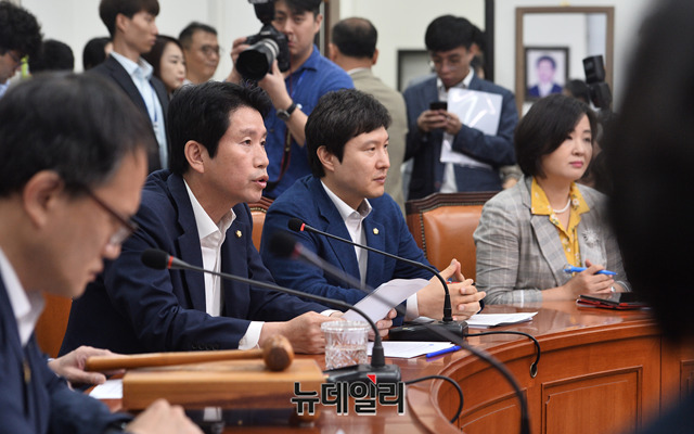 이인영 더불어민주당 원내대표가 12일 오전 국회에서 열린 최고위원회의에서 모두발언을 하고 있다.