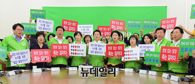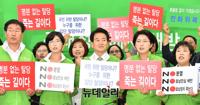 [포토] 탈당 의원들 규탄하는 민주평화당