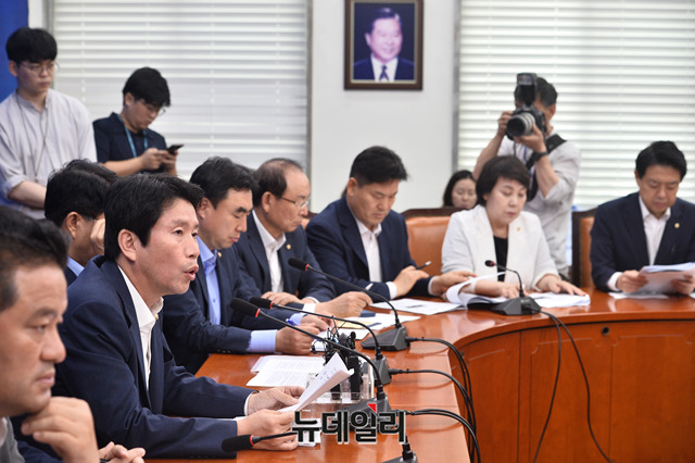 이인영 더불어민주당 원내대표가 13일 오전 국회에서 열린 원내대책회의·상임위간사단연석회의에서 모두발언을 하고 있다.