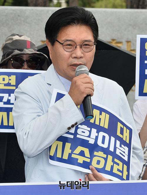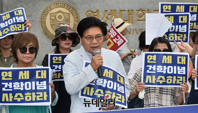 [포토] 연세대 '젠더 인권교육' 필수과목 지정 반대하는 홍문종