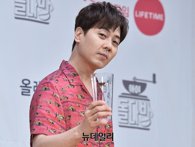 가수 앤디가 13일 오후 서울 종로구 광화문 KT에서 열린 라이프타임 예능 '아이돌다방' 제작발표회에서 포토타임을 갖고 있다.