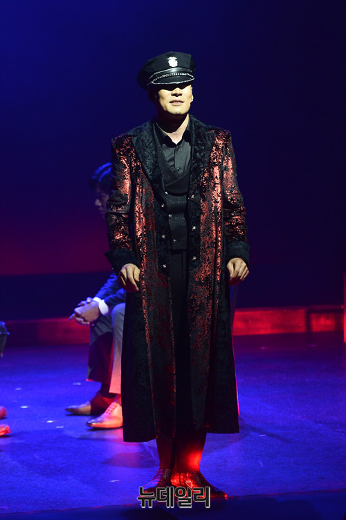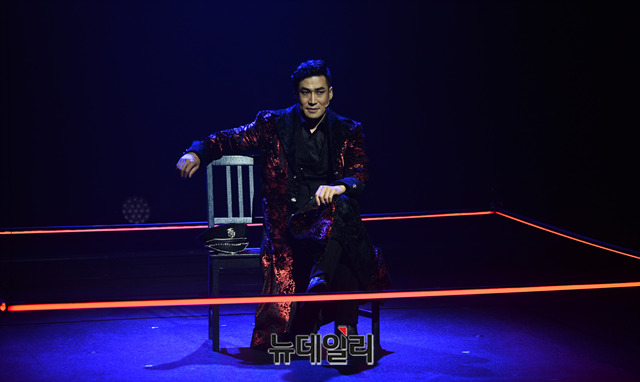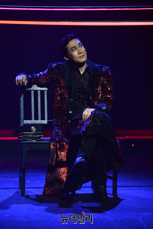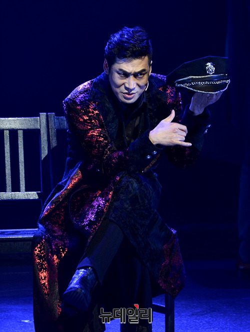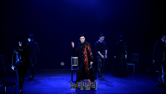 뮤지컬배우 박송권(존 루키페르 분)이 13일 오후 서울 종로구 세종문화회관에서 열린 뮤지컬 '블루레인' 프레스콜에서 무대 시연을 하고 있다.