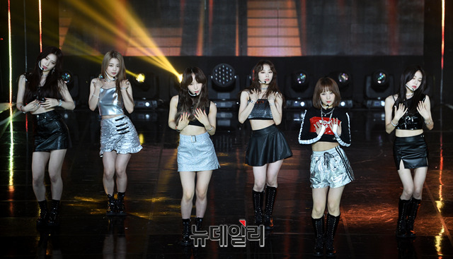 걸그룹 로켓펀치가 13일 오후 서울 마포구 SBS 프리즘타워에서 열린 SBS MTV '더 쇼(THE SHOW)' 생방송에서 무대를 선보이고 있다.