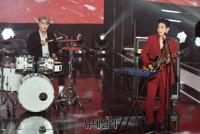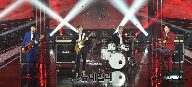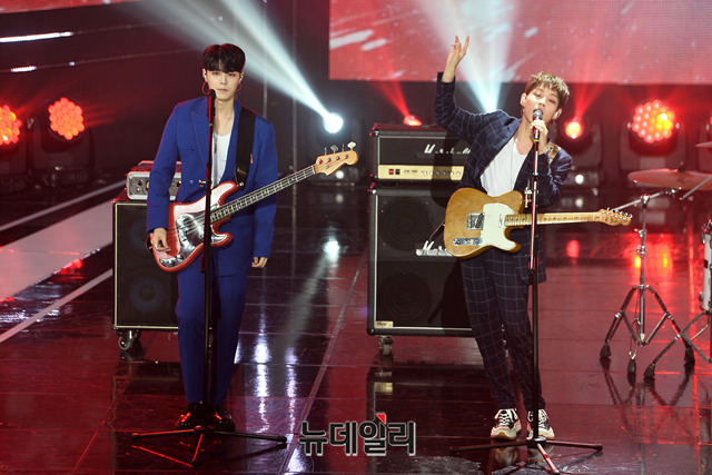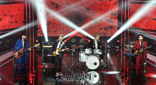 밴드 더로즈가 13일 오후 서울 마포구 SBS 프리즘타워에서 열린 SBS MTV '더 쇼(THE SHOW)' 생방송에서 무대를 선보이고 있다.