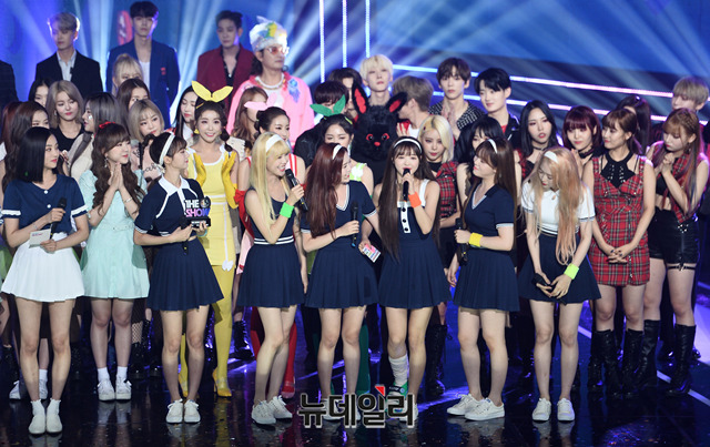 'BUNGEE(번지)'로 컴백한 걸그룹 오마이걸이 13일 오후 서울 마포구 SBS 프리즘타워에서 열린 SBS MTV '더 쇼(THE SHOW)' 생방송에서 1위를 수상해 소감을 말하고 있다.