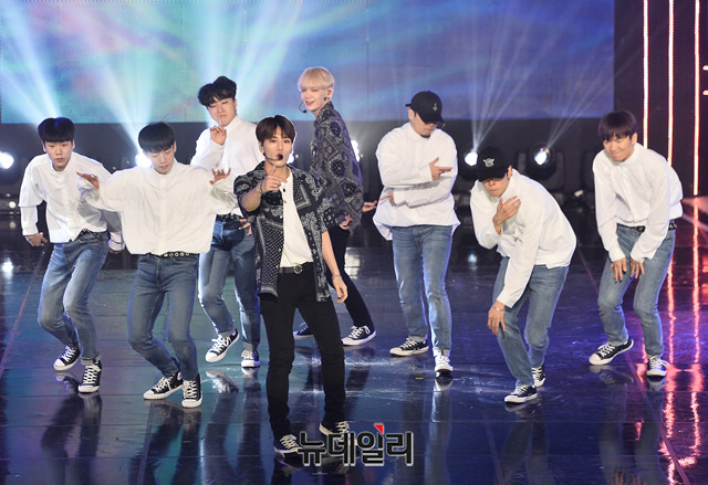 아이돌그룹 JBJ95(제이비제이 95)가 13일 오후 서울 마포구 SBS 프리즘타워에서 열린 SBS MTV '더 쇼(THE SHOW)' 생방송에서 무대를 선보이고 있다.