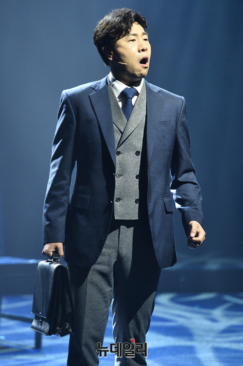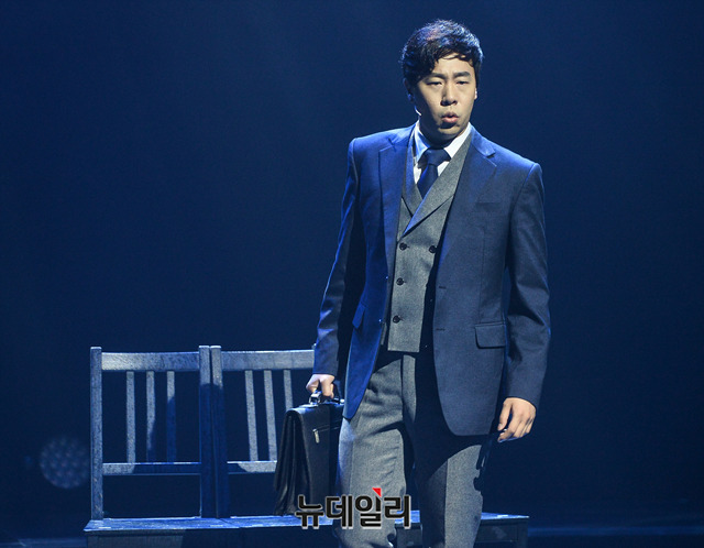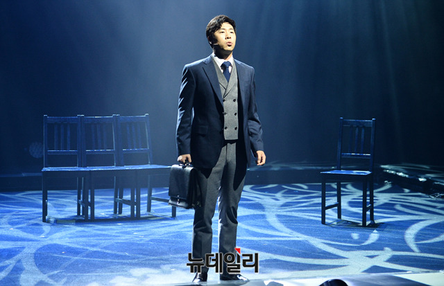 뮤지컬배우 박유덕(루크 분)이 13일 오후 서울 종로구 세종문화회관에서 열린 뮤지컬 '블루레인' 프레스콜에서 무대 시연을 하고 있다.