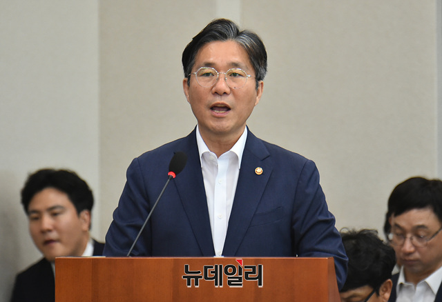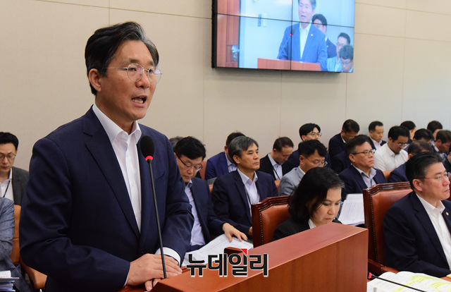성윤모 산업통상자원부 장관이 13일 오전 국회에서 열린 산업통상자원중소벤처기업위원회 전체회의에 참석해 '일본 수출규제 강화조치 현황 및 대응방안' 관련 현안보고를 하고 있다.