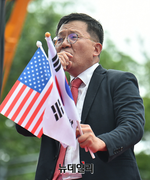 [포토] 태극기 집회 참석한 박성현 세뇌탈출 대표