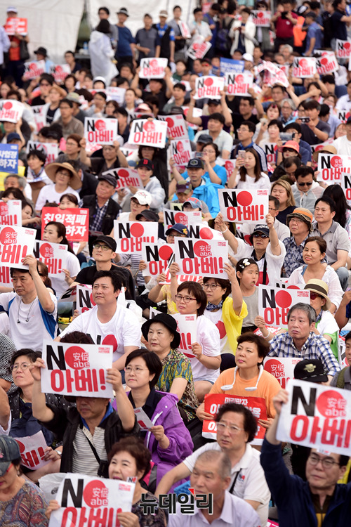 [포토] 아베 규탄 피켓 든 집회 참가자들