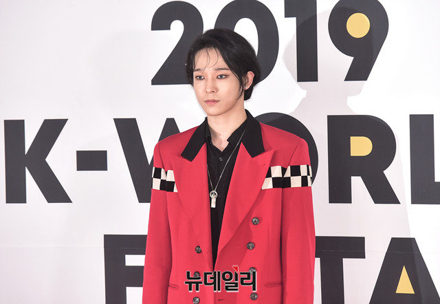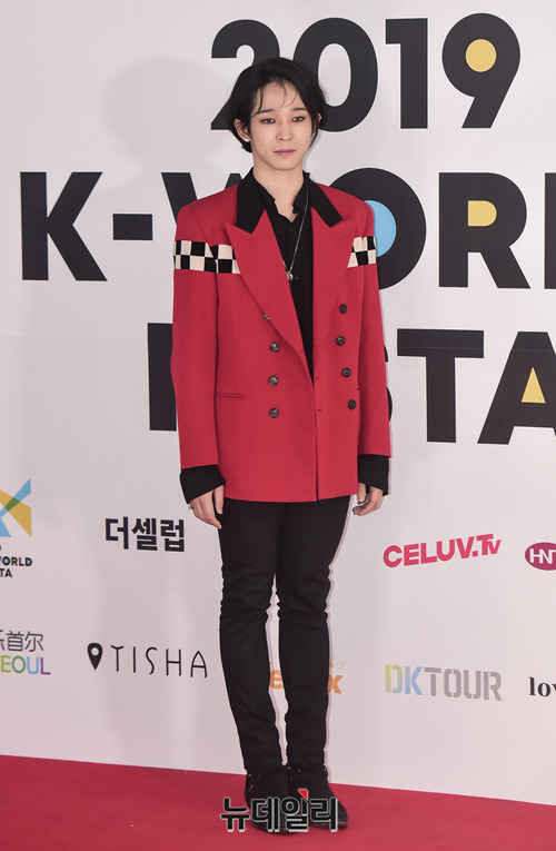 가수 남태현이 16일 오후 서울 송파구 KSPO DOME(올림픽공원 체조경기장)에서 열린 '2019 케이월드 페스타(2019 K-WORLD FESTA)' 레드카펫 행사에서 포토타임을 갖고 있다.