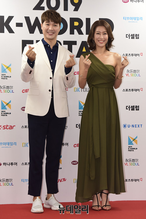 개그맨 박수홍과 가수 서제이가 18일 오후 서울 송파구 올림픽공원 SK올림픽핸드볼경기장에서 열린 '2019 케이월드 페스타(2019 K-WORLD FESTA)'의 K-소울 콘서트 레드카펫 행사에서 포토타임을 갖고 있다.K-소울 콘서트는 포크, 발라드, R&B 등 아이돌 음악을 제외한 다채로운 K뮤직을 아우르는 공연이다. 이날 신계행, 유리상자, 민해경, 홍경민, 김범수, 휘성, 나윤권, 길구봉구, 송하예 등 시대를 풍미하는 국내 대표 뮤지션들이 참석했다.