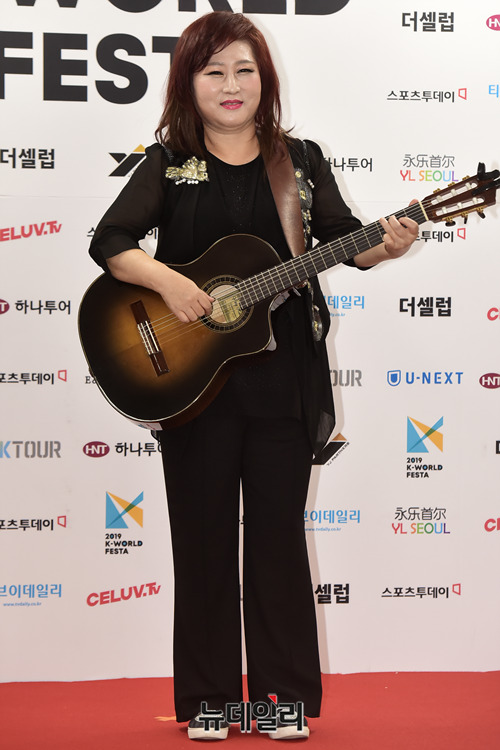 가수 신계행이 18일 오후 서울 송파구 올림픽공원 SK올림픽핸드볼경기장에서 열린 '2019 케이월드 페스타(2019 K-WORLD FESTA)'의 K-소울 콘서트 레드카펫 행사에서 포토타임을 갖고 있다.