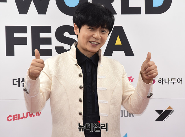 가수 이규석이 18일 오후 서울 송파구 올림픽공원 SK올림픽핸드볼경기장에서 열린 '2019 케이월드 페스타(2019 K-WORLD FESTA)'의 K-소울 콘서트 레드카펫 행사에서 포토타임을 갖고 있다.