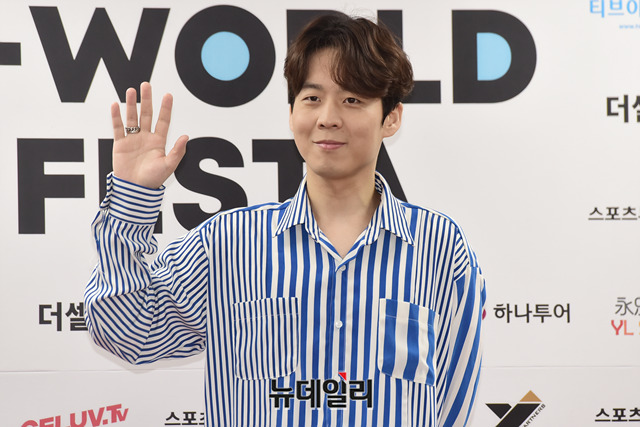 가수 하동균이 18일 오후 서울 송파구 올림픽공원 SK올림픽핸드볼경기장에서 열린 '2019 케이월드 페스타(2019 K-WORLD FESTA)'의 K-소울 콘서트 레드카펫 행사에서 포토타임을 갖고 있다.