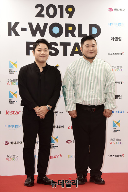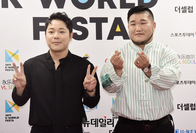 가수 길구봉구가 18일 오후 서울 송파구 올림픽공원 SK올림픽핸드볼경기장에서 열린 '2019 케이월드 페스타(2019 K-WORLD FESTA)'의 K-소울 콘서트 레드카펫 행사에서 포토타임을 갖고 있다.