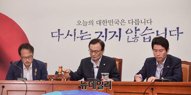 이해찬 더불어민주당 대표가 19일 오전 국회에서 열린 최고위원회의에서 의사진행을 하고 있다.