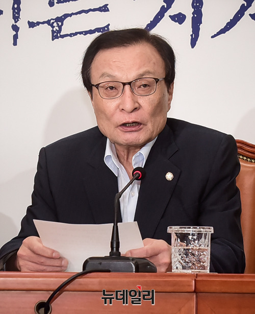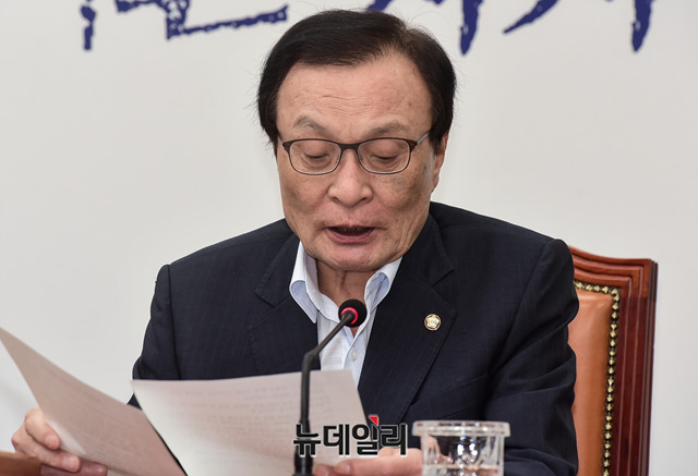 이해찬 더불어민주당 대표가 19일 오전 국회에서 열린 최고위원회의에서 모두발언을 하고 있다.