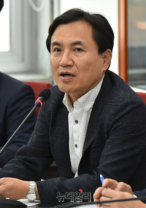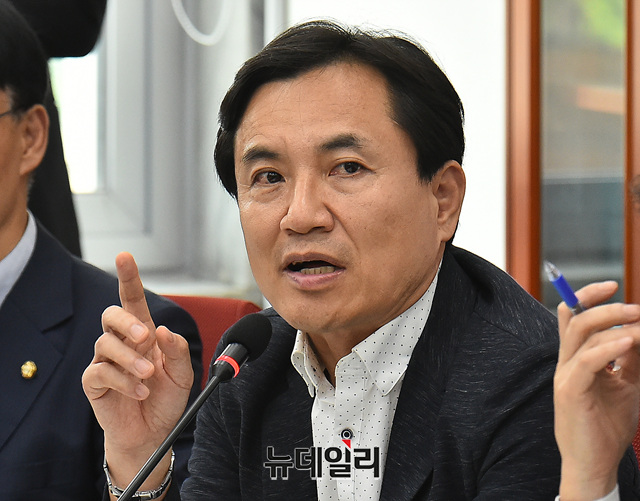 김진태 자유한국당 의원이 19일 오전 국회 원내대표실에서 열린 '조국 법무부 장관 후보자 인사청문회 대책TF 회의'에 참석해 모두발언을 하고 있다.