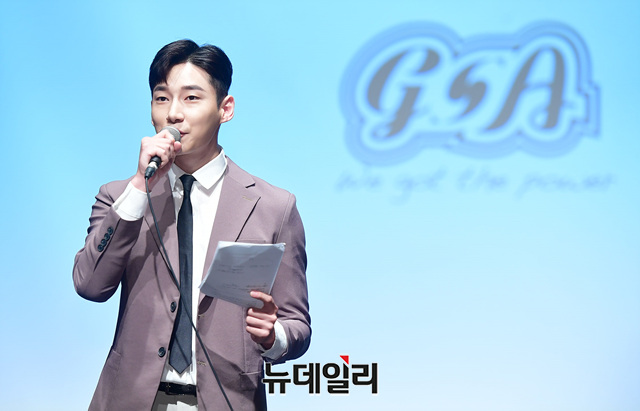 배우 오세현이 19일 오후 서울 강남구 SAC아트홀에서 열린 걸그룹 소녀주의보 3번째 싱글앨범 쇼케이스에서 멤버를 소개하고 있다.