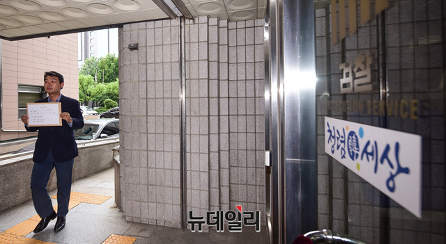 백승재 변호사 겸 행동하는자유시민 공동대표가 19일 오후 서울 마포구 서울서부지방검찰청에서 열린 조국 법무부장관 후보자 형사고발 기자회견 직후 고발장을 접수를 위해 검찰청에 입장하고 있다.이날 백 대표는 "조 후보자는 업무상 배임, 조 후보자 부인은 부동산 실명제법 위반, 조 후보자 동생 전처에 대해서는 부동산 실명제법 위반·강제집행면탈죄, 조 후보자 동생은 강제집행면탈죄 혐의 등으로 고발장을 접수한다"며 조 후보자에게 스스로 사퇴할 것을 촉구했다.