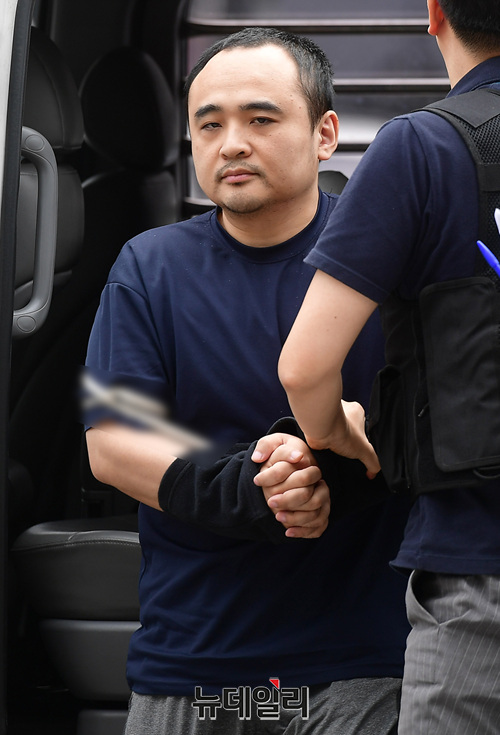 [포토] 호송차서 맨 얼굴로 내린 '한강몸통 시신사건' 장대호