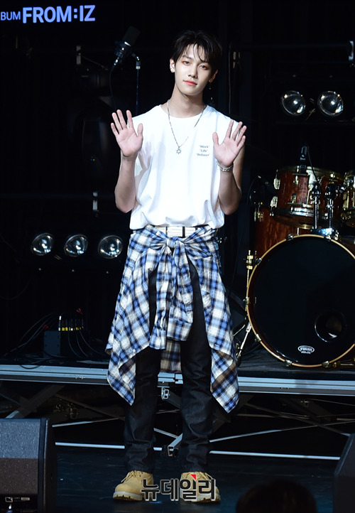 밴드 'IZ(아이즈)' 현준이 21일 오후 서울 마포구 웨스트브릿지 라이브홀에서 열린 두 번째 앨범'FROM:IZ(프롬아이즈)' 쇼케이스에서 포토타임을 갖고 있다.
