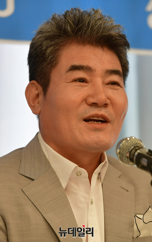 트로트 가수 진성이 22일 오전 서울 중구 한국프레스센터에서 열린 '제5회 진안고원 트로트 페스티벌' 기자간담회에서 인사말을 하고 있다.