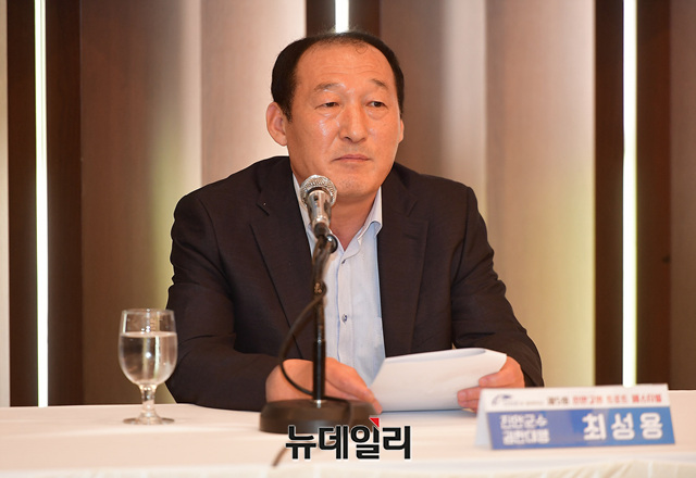 최성용 진안군수 권한대행(부군수)이 22일 오전 서울 중구 한국프레스센터에서 열린 '제5회 진안고원 트로트 페스티벌' 기자간담회에서 인사말을 하고 있다.