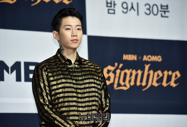 래퍼 박재범이 22일 오후 서울 중구 그랜드 앰배서더 서울에서 열린 MBN 예능 '사인히어(Signhere)' 제작발표회에서 포토타임을 갖고 있다.