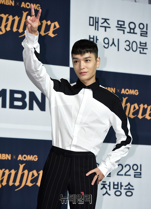 래퍼 사이먼도미닉이 22일 오후 서울 중구 그랜드 앰배서더 서울에서 열린 MBN 예능 '사인히어(Signhere)' 제작발표회에서 포토타임을 갖고 있다.